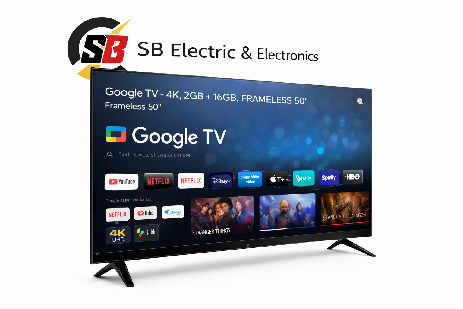 SB Google TV 50″ 4K প্রিমিয়াম প্রযুক্তি ও বড় স্ক্রিনের এক চমৎকার সমন্বয়। এর 4K Ultra HD ডিসপ্লে উজ্জ্বল, স্পষ্ট এবং প্রাণবন্ত ছবি উপস্থাপন করে, যা সিনেমা, গেমিং এবং স্ট্রিমিং অভিজ্ঞতাকে আরও বাস্তব এবং উপভোগ্য করে তোলে। ফ্রেমলেস ডিজাইন টিভিটিকে দেয় আধুনিক এবং স্টাইলিশ লুক। 2GB RAM ও 16GB স্টোরেজের মাধ্যমে মসৃণ ও দ্রুত পারফরম্যান্স নিশ্চিত হয়। উন্নত সাউন্ড কোয়ালিটি, বিদ্যুৎ সাশ্রয়ী ব্যবহার এবং ৩ বছরের ওয়ারেন্টি এটিকে ঘর বা অফিসের জন্য একটি নির্ভরযোগ্য এবং প্রিমিয়াম স্মার্ট টিভি করে তোলে।